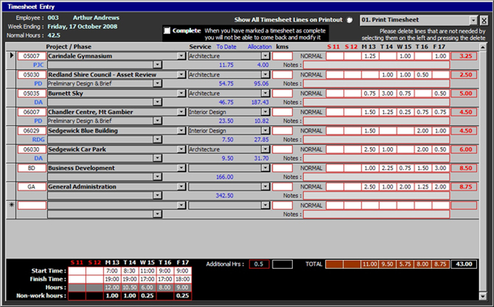 The primary function of this module is to create a Fee Budget for a project and then keep track of how much time is spent on that Project, or Non-Project activity, how much that time costs and how thatequates to how much has been billed to the client. Secondary to keeping track of the actual is the ability to allocate resources to a Project/Phase with a view to overall resource management and to get an overall picture of the potential Profit/Loss for a project during its life, and consequently, for the whole office